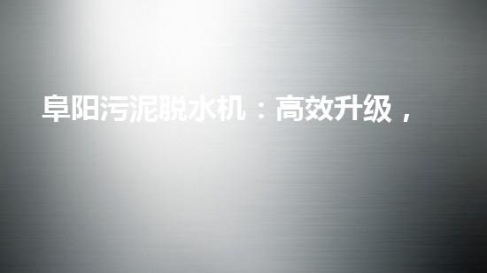 阜阳污泥脱水机:高效升级,实现环保新突破
