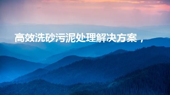 高效洗砂污泥处理解决方案,让污泥成为可利用资源!