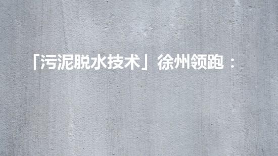「污泥脱水技术」徐州领跑:高效节能、环保安全