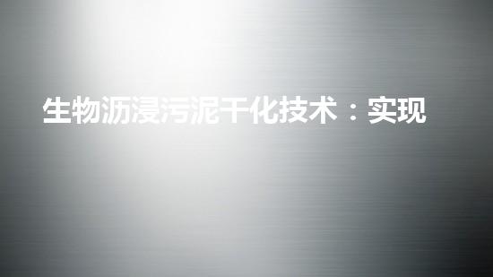 生物沥浸污泥干化技术:实现无害化处理的新选择