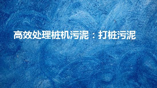 高效处理桩机污泥:打桩污泥处理装置的完美解决方案