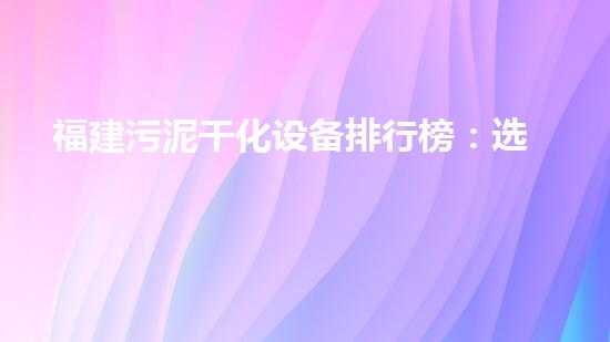 福建污泥干化设备排行榜:选择哪家更值得信赖?