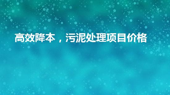 高效降本,污泥处理项目价格分析
