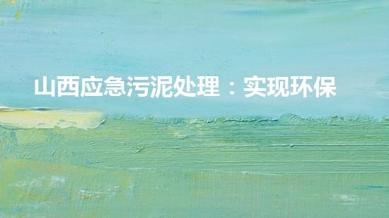 山西应急污泥处理:实现环保治理与资源化利用