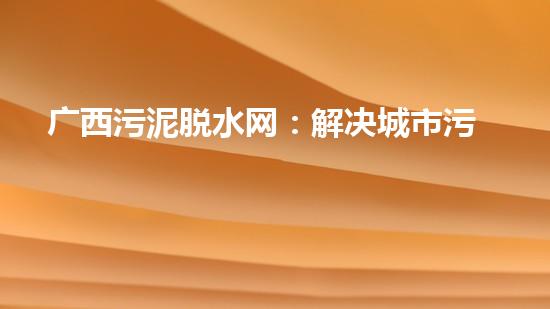 广西污泥脱水网:解决城市污水处理难题的有效途径
