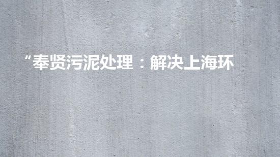 “奉贤污泥处理:解决上海环保难题的创新之路”
