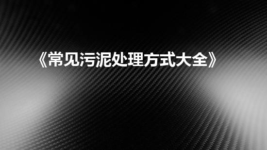 《常见污泥处理方式大全》