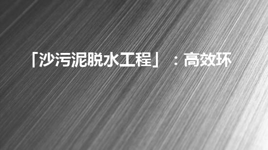 「沙污泥脱水工程」:高效环保的新型处理方案