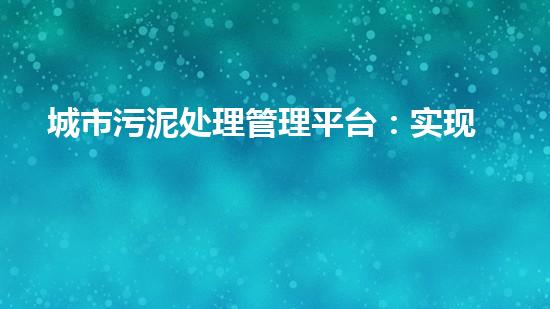 城市污泥处理管理平台:实现高效环保资源利用