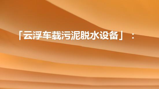 「云浮车载污泥脱水设备」:新时代环保治理的重要选择