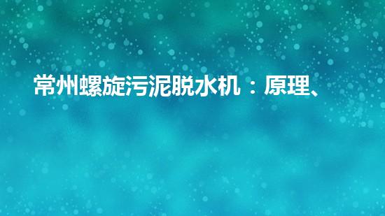 常州螺旋污泥脱水机:原理、应用与维护