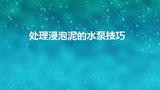 处理浸泡泥的水泵技巧