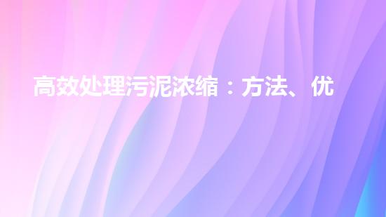 摘要:污泥的处理一直是环境管理中的重要任务,高效处理污泥浓缩可以有效减少处理负担及成本。本文将介绍高效处理污泥浓缩的方法、优势及应用探析。