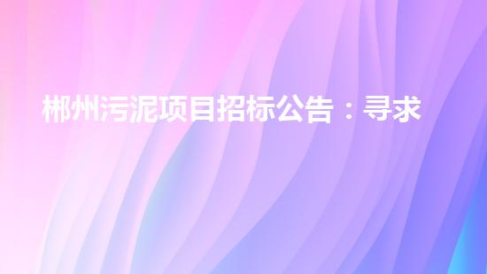 因此,对污泥的处理和利用成为一个备受关注的话题。本次郴州污泥项目招标旨在寻求新的污泥处理方案,这将显著提高污泥的资源化利用。