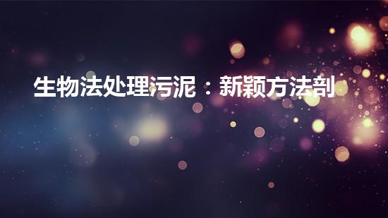 生物法处理污泥是实现污泥资源化利用的重要手段。近年来,随着环保技术的不断发展,生物法处理污泥的新颖方法也不断涌现:
