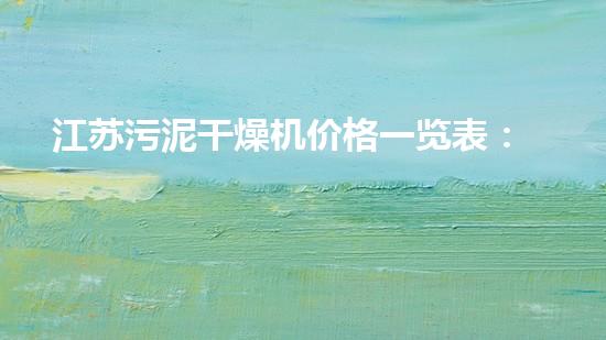 江苏污泥干燥机价格一览表:可靠、高效、环保的选择