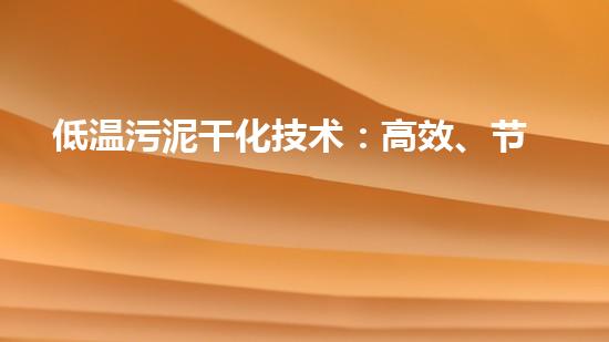 2.节能性:相比传统的处理方法,低温污泥干化技术的能源消耗更低,能有效减少处理过程中的能源消耗。