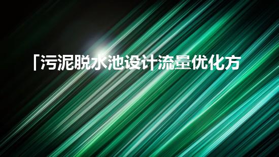 本文主要介绍了污泥脱水池设计流量优化方法探析。污泥脱水池作为处理废水中污泥的重要设备,其设计流量的合理选择和优化对于提高废水处理效率、减少处理成本具有重要意义。因此,本文将从不同角度对污泥脱水池设计流量优化方法做详细阐述。