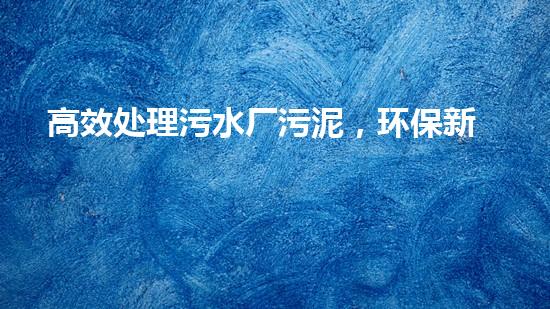 高效处理污水厂污泥,环保新科技引领城市发展,是城市可持续发展的重要组成部分。