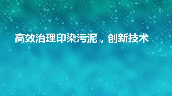 对于印染污泥的处理,目的不仅是治理污染,同时也要实现资源化利用。因此,技术创新的应用是印染污泥处理中的重要环节。新技术和新材料的应用可以提高废弃物的资源化利用率,减少二次污染的产生。