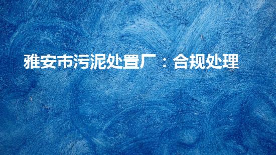 摘要:雅安市污泥处置厂致力于合规处理污泥资源,提高污泥资源化利用率,保护环境。本文从多个方面深入阐述雅安市污泥处置厂的优势与特点。