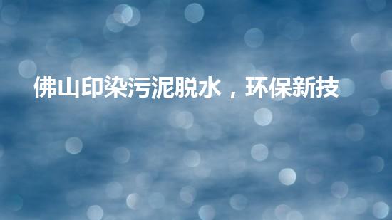生物脱水技术在印染污泥脱水领域中还处于发展初期,但在环保方面具有广泛的应用前景,将会得到更多的关注和推广。