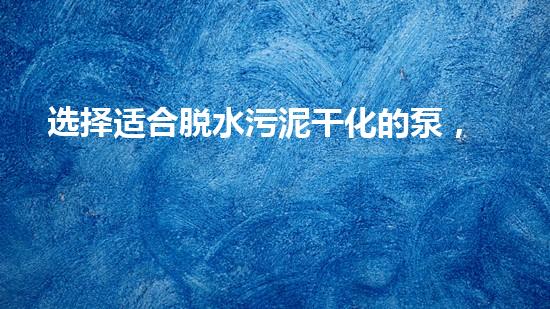 选择适合脱水污泥干化的泵需要考虑污泥特性、泵的类型和结构、泵的材质、功率和流量等多个因素。通过选型,可以选择适合特定需求和工作条件的泵。