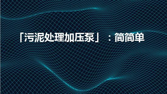 随着城市污水处理工业的发展,污泥成为一个日益严重的问题。传统的处理方法效率低、成本高,不仅浪费资源,而且还会对环境造成污染。因此,本文将介绍一种新型污泥处理加压泵,以简单高效的方法处理污泥,旨在吸引读者的兴趣,提供背景信息,并将介绍四个方面的详细专业深入的阐述。