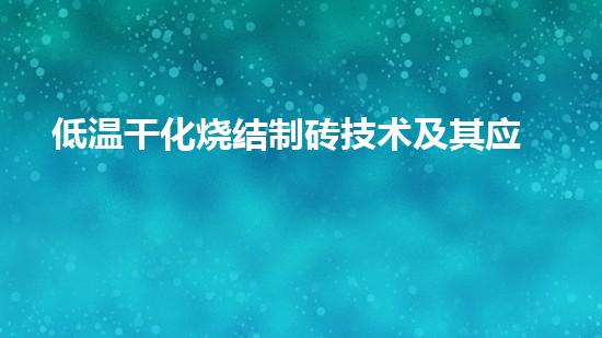 低温干化烧结制砖技术是一种与传统烧制技术不同的新型砖块制造技术。其主要特点如下:
