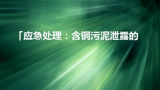 含铜污泥泄露事件需要应急处理方案,以最优的方式减少污染的扩散。方案包括各种技术和方法,例如使用化学剂进行吸附、沉淀,或利用生物方法分解有害物质。另外,将污染土壤挖掉或加入其他材料覆盖亦是有效的方法。