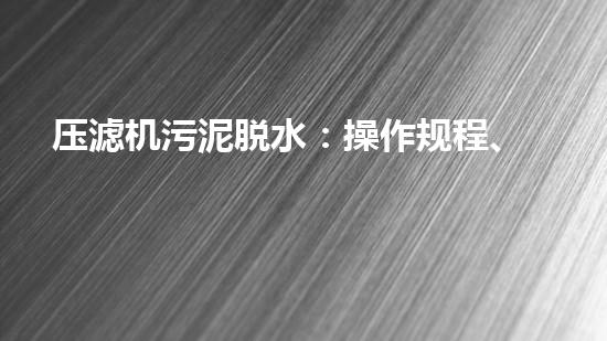 压滤机是一种常见的脱水处理设备,常用于处理污泥。本文就压滤机污泥脱水的操作规程、参数优化和升级方案进行详细阐述。其中,我们将分别从设备操作、参数优化、升级方案、新技术应用、压滤机维护和污泥再生利用等方面,对压滤机的污泥脱水进行深入分析,为相关工作者提供参考。