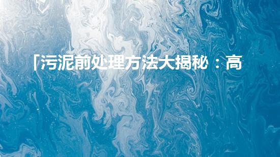 3. 生活垃圾垫料法:将污泥与生活垃圾垫料混合,通过大肠杆菌降解,达到高效、经济的前处理效果。