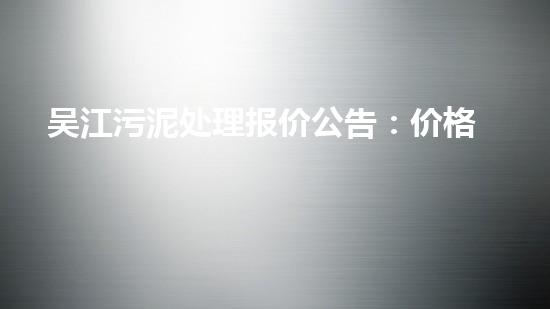 污泥处理市场是一个逐渐兴起的庞大产业,因此污泥处理的企业数量也在逐年增加。在市场竞争激烈的情况下,企业需将价格透明化,以更好地争取市场份额。吴江污泥处理报价公告便是为了在这个市场中树立公信力。