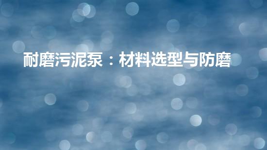 在污泥处理中,耐磨污泥泵的材料选型和防磨设计是关键因素。本文从材料选型、防磨设计、使用寿命、使用环境等方面进行深入阐述,旨在帮助读者更好地了解如何选择和使用耐磨污泥泵。