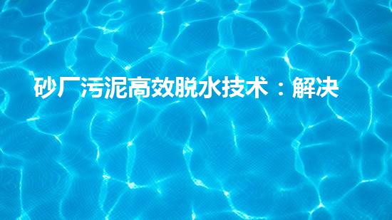 随着工业的不断发展和城市化进程的加速,污水、污泥的处理问题成为了一个迫切需要解决的问题。本文以砂厂污泥高效脱水技术为中心,探讨如何解决污泥处理难题,引出读者的兴趣,并提供给读者背景信息。