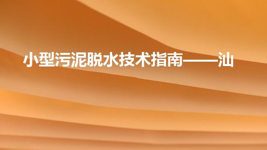 摘要:本文介绍了小型污泥脱水技术指南——汕头实践的相关内容。汕头市工业污染日益加重,越来越多的污泥需要处理,而小型污泥脱水技术正成为解决问题的重要手段。