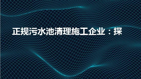 探秘隐匿的城市黑科技:正规污水池清理施工企业