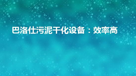 巴洛仕污泥干化设备:效率高氧化处置技术的革新之选