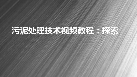 污泥处理技术视频教程:探索废物的奇妙转身,你想知道它们如何变废为宝吗?