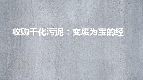 收购干化污泥:变废为宝的经济新蓝海在追求可持续进步的今天,一个看似不起领域正悄然成为资源循环的根本一环——收购干化污泥。你是否曾想过,污水处置后留下的那些“废弃物”,经过处置后,能摇身一变成为有价值的...