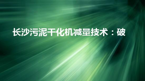 长沙污泥干化机减量技术:破解污泥处置难题的创新策划